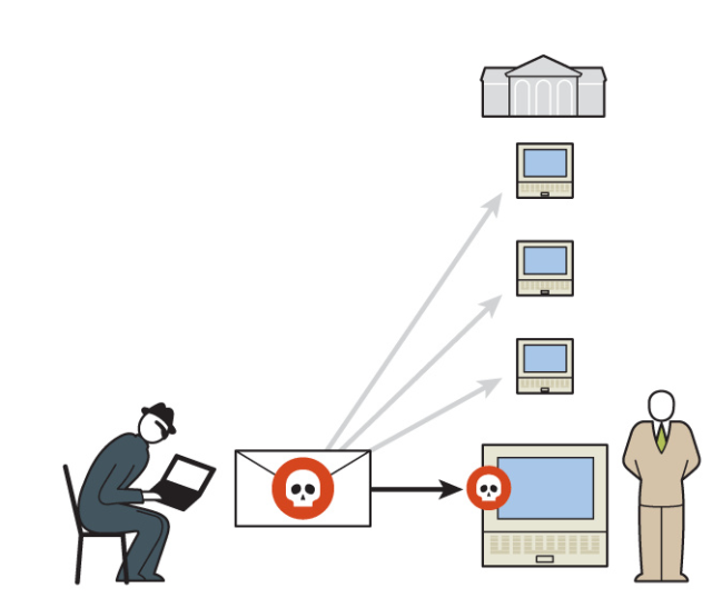 首先,攻击者使用恶意代码寻找那些管理现金转帐系统或者ATM机的员工,然后收集银行的内部信息。