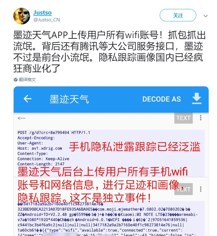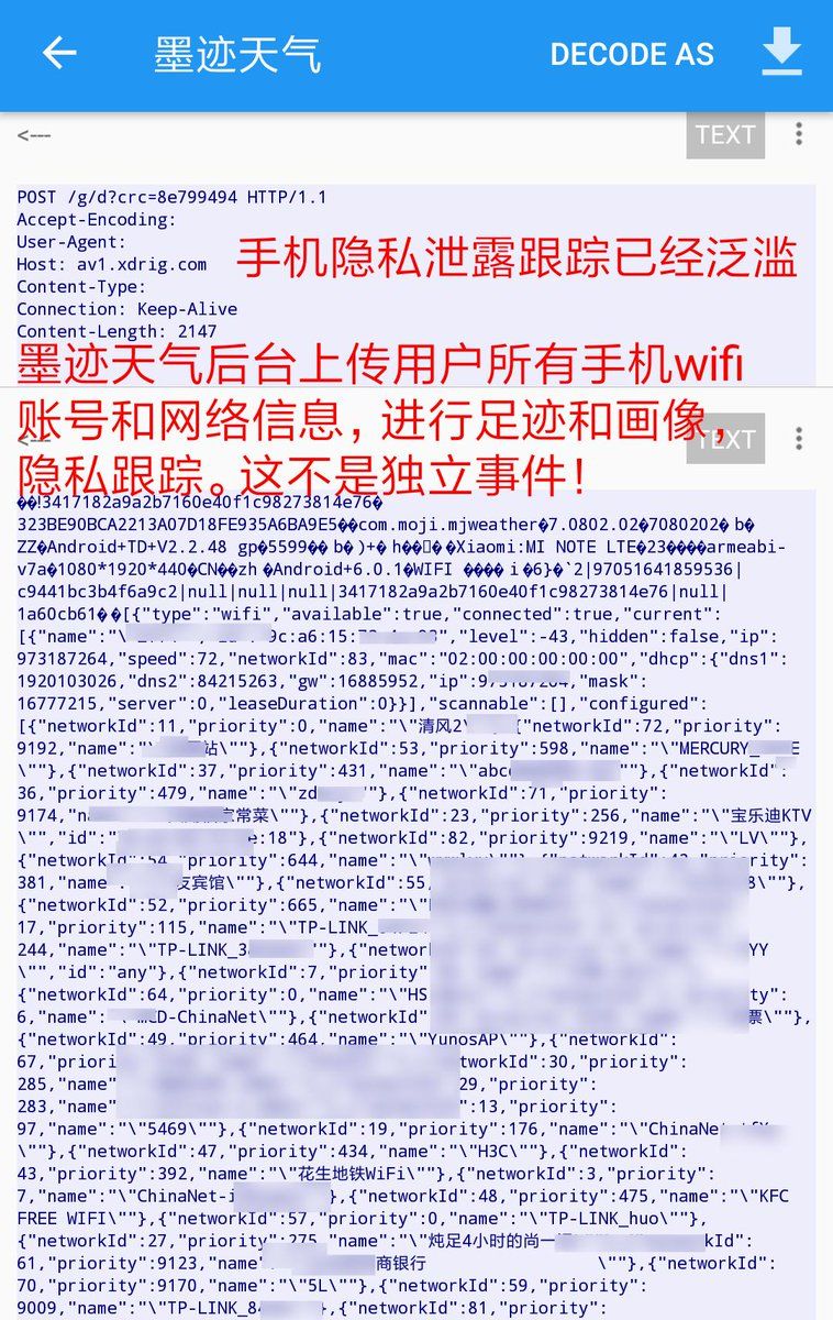 疑似国内某天气APP上传用户所有WiFi账号和网络信息