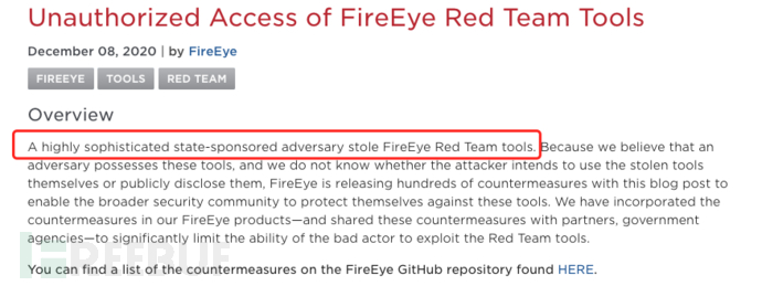 12月8日,美国顶级安全公司FireEye(中文名:火眼)发布一则通告称:其内部网络被某个“拥有一流网络攻击能力的国家”所突破,这场攻击导致FireEye的红队安全工具被盗走。